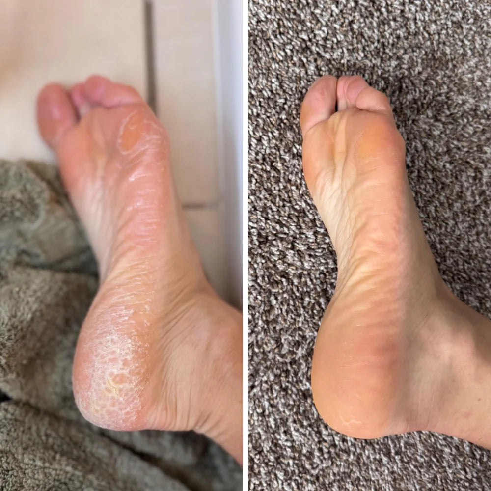 Voyez par vous-même la transformation en quelques minutes. Notre outil élimine les callosités et les zones rugueuses pour révéler une peau douce et lisse.