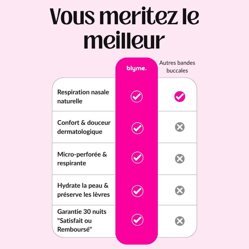 Vous avez 30 nuits complètes pour tester les Bandes Buccales Blyme.