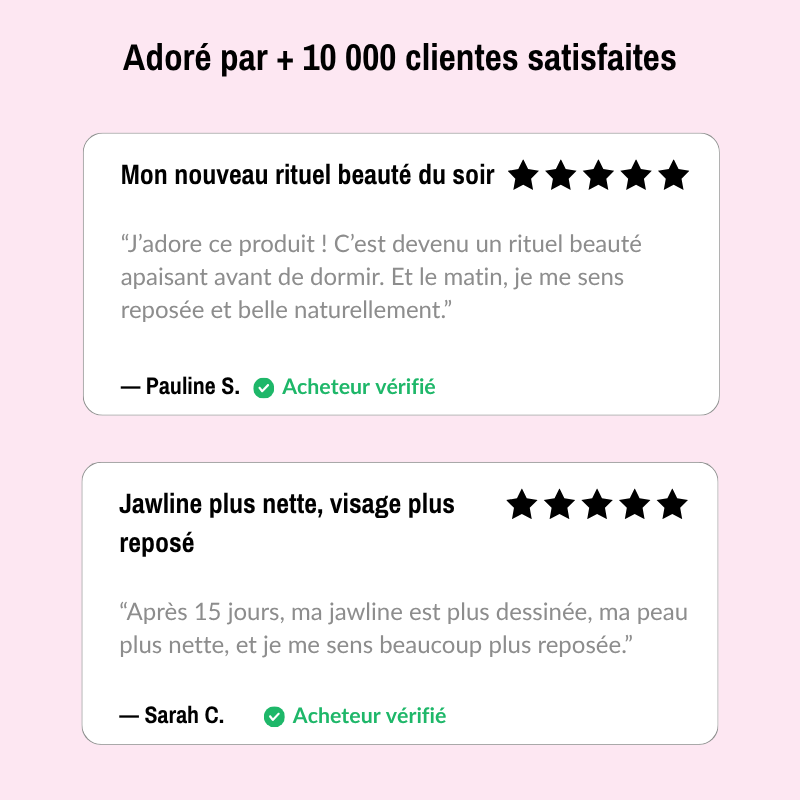 Élu meilleur allié beauté/sommeil, approuvé par +10 000 femmes. Note moyenne 4,8/5 ⭐️.