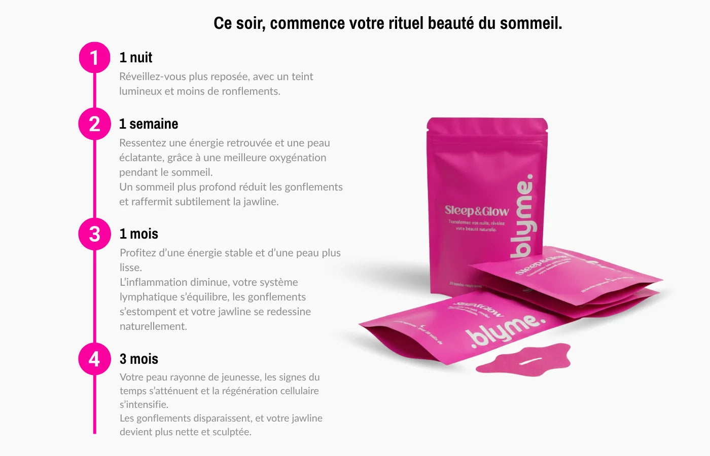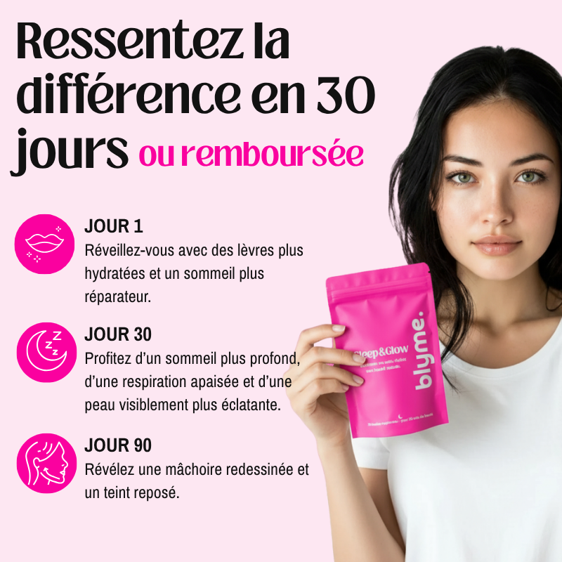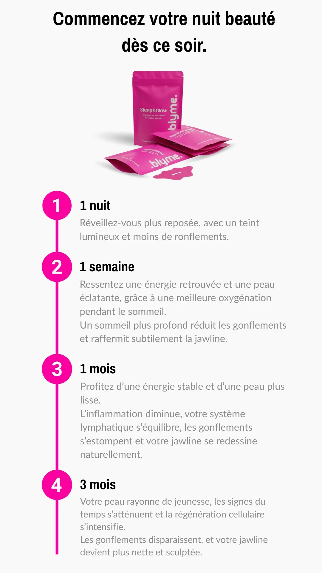 Pour des résultats optimaux, utilisez Blyme Sleep & Glow chaque nuit.