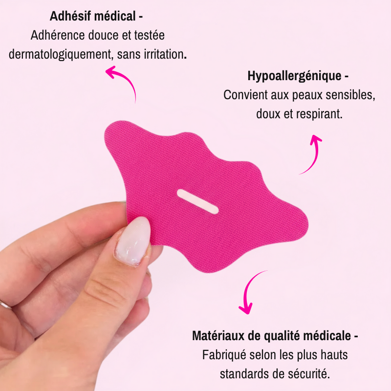Blyme Sleep & Glow utilise un adhésif hypoallergénique de qualité médicale, spécialement testé pour la peau du visage.